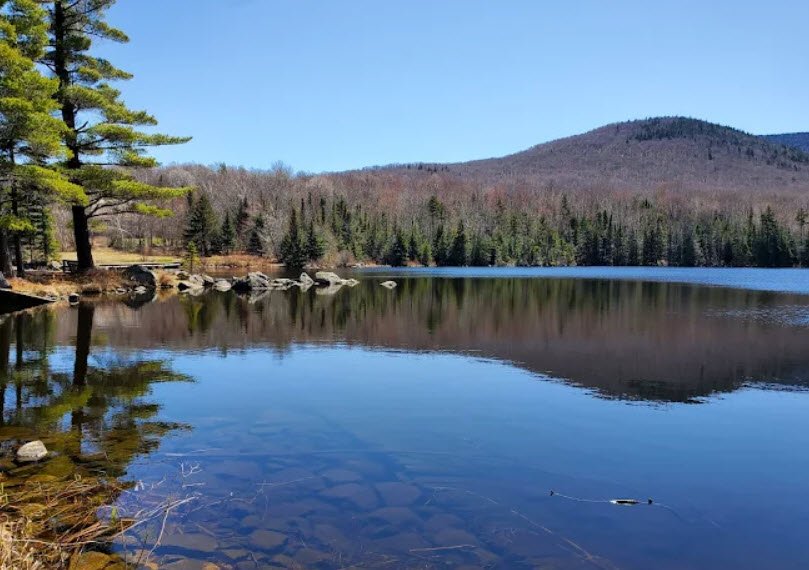 Open year-round, it features the historic Seyon Lodge offering private lodging, event spaces, dining, and boat rentals for fly fishing, alongside trails for hiking, biking, picnicking, snowshoeing, and cross-country skiing that loop around the pond and connect to Spruce Mountain. Surrounded by thousands of acres of forest, it provides tranquil views, wildlife spotting, and rustic charm ideal for nature lovers in all seasons.