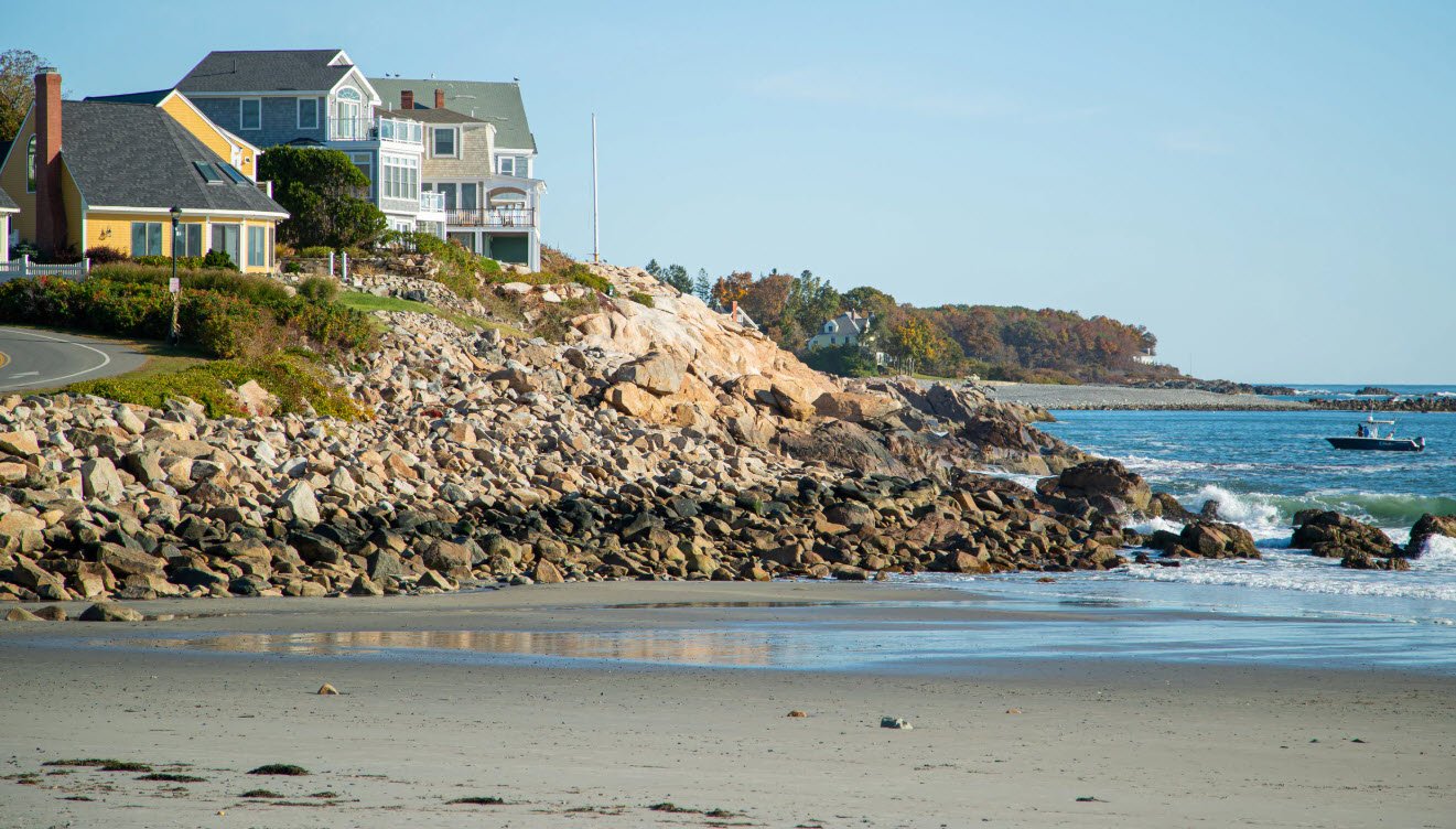 Short Sands Beach in York, Maine, is a popular, quarter-mile-long sandy pocket beach nestled between rocky cliffs in the village of York Beach.
