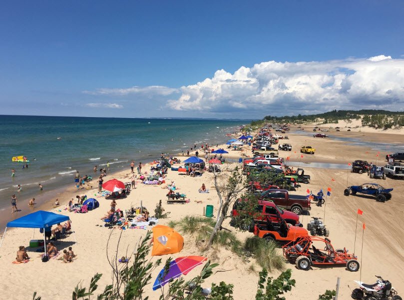 The park features a popular 450-acre off-road vehicle (ORV) area, the only motorized sand dune riding opportunity east of the Mississippi River, where visitors can ride ATVs or UTVs following special rules and permit requirements. For non-motorized recreation, the park provides a day-use area on inland Silver Lake with swimming, boating, and fishing. It also offers a modern campground with 200 campsites, many shaded and some adjacent to the lake for boat mooring.
