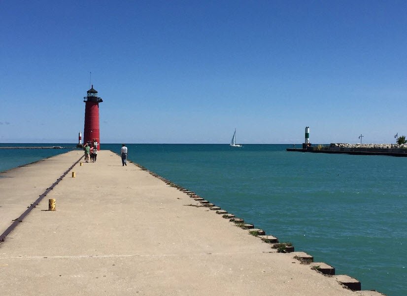 Simmons Island Beach in Kenosha, Wisconsin, is a popular public beach on Lake Michigan known for its scenic views, soft sandy shore, and family-friendly environment.