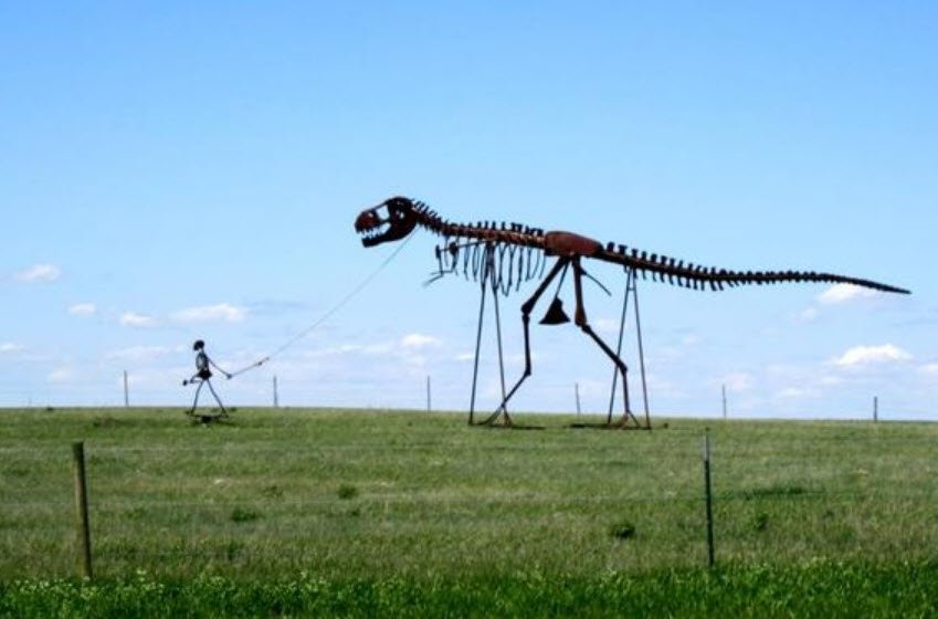 Although not officially part of the town, the sculpture draws attention to the area and provides a whimsical photo opportunity for those driving by. The creator's light-hearted reason for including a dinosaur alongside the man was simply that it's very old, fitting the theme of the historic town nearby, making it a charming and unexpected gem in South Dakota’s landscape.