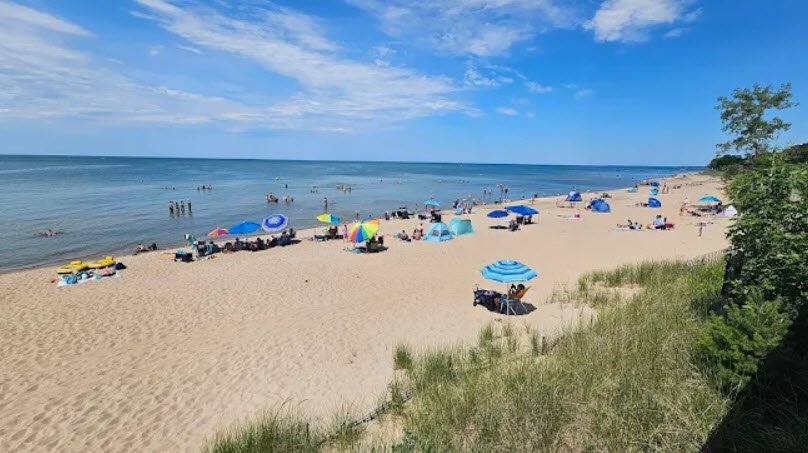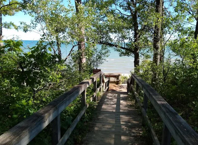 The park mixes forest, wetlands, and forested dunes with about half a mile of sandy beach, allowing visitors to walk along the shoreline, relax on the sand, and enjoy both sunrises and sunsets over the water. Day‑use areas include picnic spots, a beach house, and several miles of trails for hiking, biking, or cross‑country skiing, while the nearby campground offers shaded electric and non‑electric sites, cabins, and safari‑style tents.