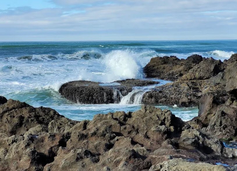 Smelt Sands State Recreation Site is a small coastal day-use park in Yachats, Lincoln County, Oregon, USA, along U.S. Highway 101 near milepost 163, offering access to a dramatic basaltic rocky shoreline with tide pools, spouting horns, and powerful wave action.