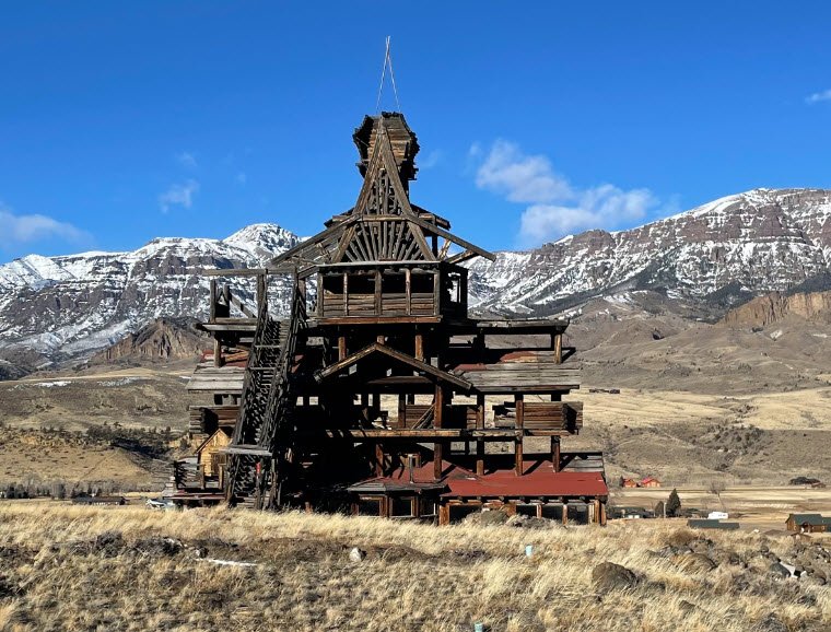 Smith Mansion in Wyoming, also known as the Smith Family Cabin, is a large, unique, multi-story log structure located in Wapiti Valley near Cody and Yellowstone National Park.
