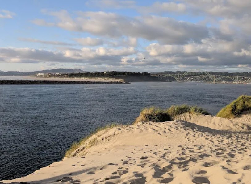 South Beach State Park is a 498-acre coastal park in Newport, Lincoln County, Oregon, USA, located next to the Yaquina Bay Bridge and just south of the South Jetty, offering miles of broad sandy beach, paved trails like the Jetty Trail for walking, biking, and jogging, and easy access to the ocean for surfing, fishing, crabbing, clamming, and beachcombing.