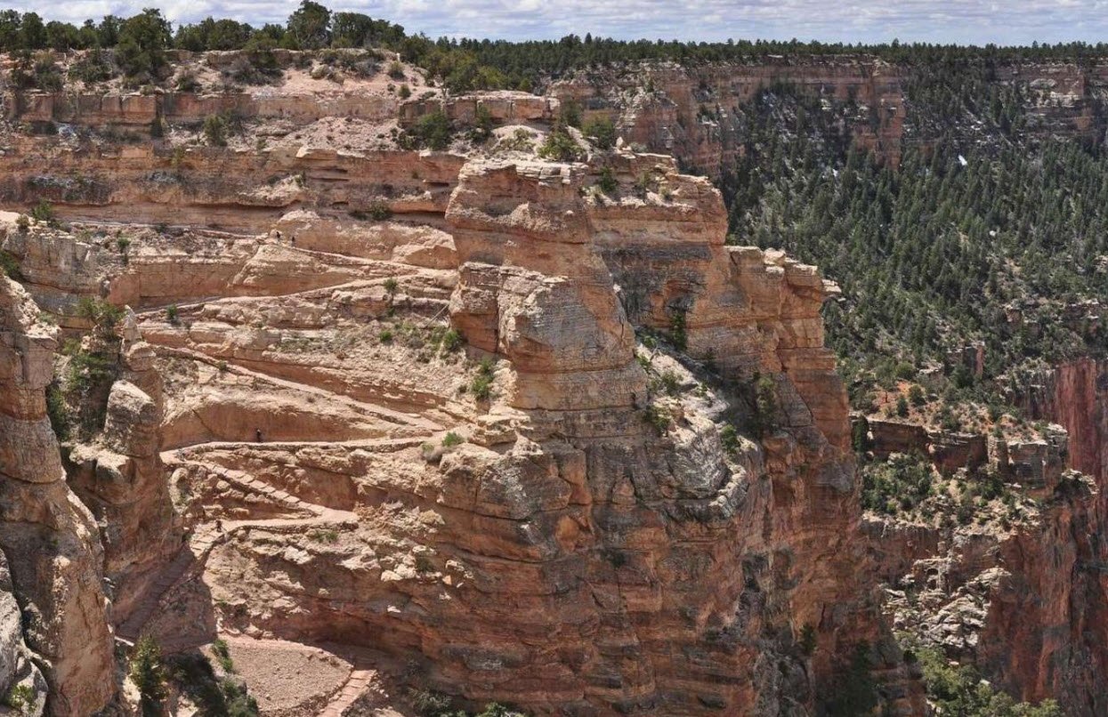 Unlike other trails, it follows a ridgeline, providing expansive and unobstructed panoramic views of the canyon throughout the hike. The trail descends steeply through various rock layers including Kaibab Limestone, Coconino Sandstone, and Redwall Limestone, offering notable viewpoints such as Ooh Aah Point and Cedar Ridge, which serve as popular turnaround spots.