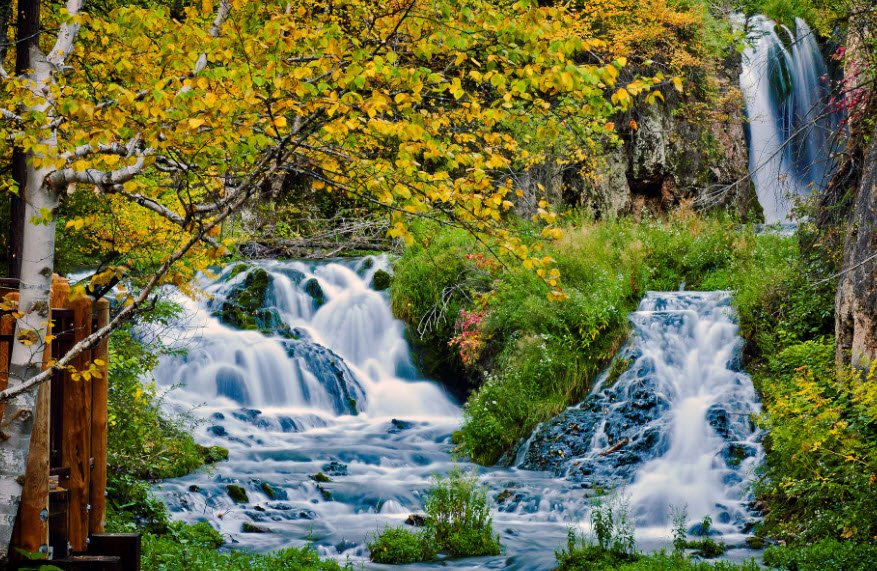 Connected by a trail system, it offers year-round hiking, birdwatching including the rare American Dipper, wildlife viewing like deer and mountain goats, fishing, picnicking, and breathtaking scenery especially during fall foliage, all accessible via the Spearfish Canyon Scenic Byway (US Route 14A) south of Spearfish and west of Lead with no entrance fee.