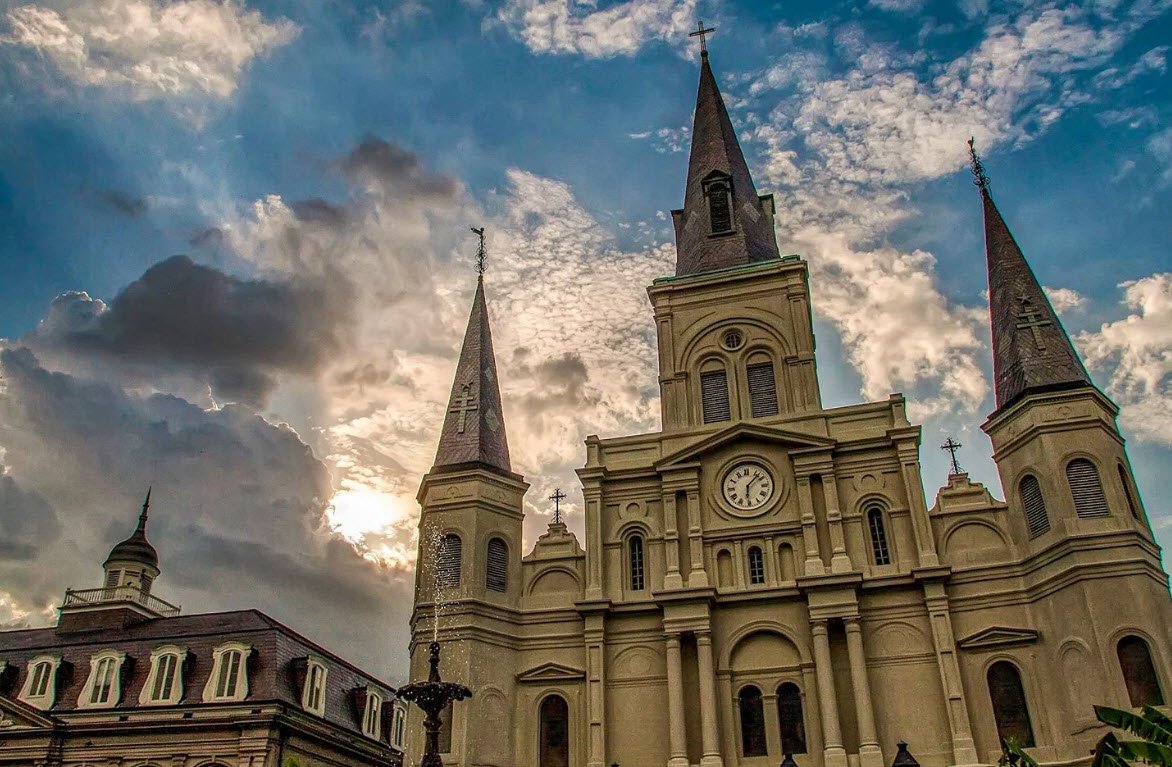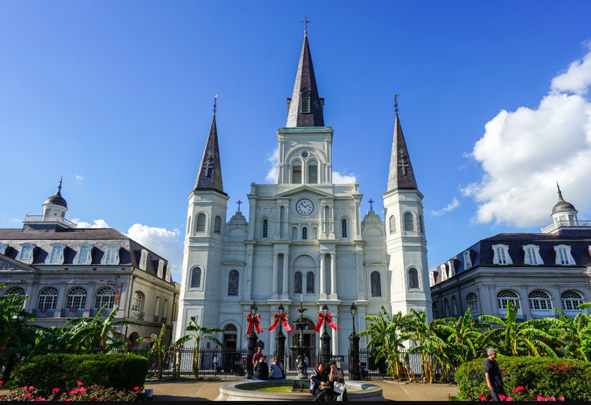 Inside, the cathedral is adorned with galleries, frescoes painted in the 19th century, and stained-glass windows depicting the life of King Louis IX, the cathedral’s namesake and patron saint. Designated a minor basilica in 1964 by Pope Paul VI, it remains a spiritual and cultural symbol of New Orleans, playing a central role in the city’s religious life and drawing tourists worldwide for its historical significance and architectural beauty.