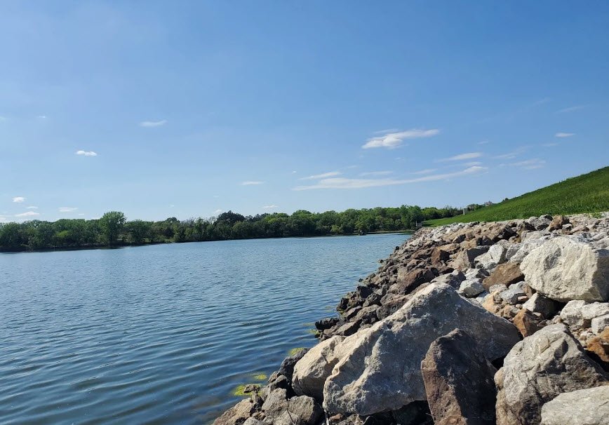 The no‑wake lake supports fishing for species such as bluegill, crappie, largemouth bass, walleye, and wiper, with a wheelchair‑accessible fishing pier, while boating, kayaking, and canoeing are popular at low speeds thanks to a 5‑mph speed limit.