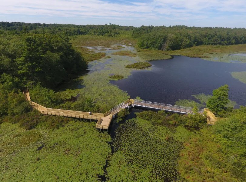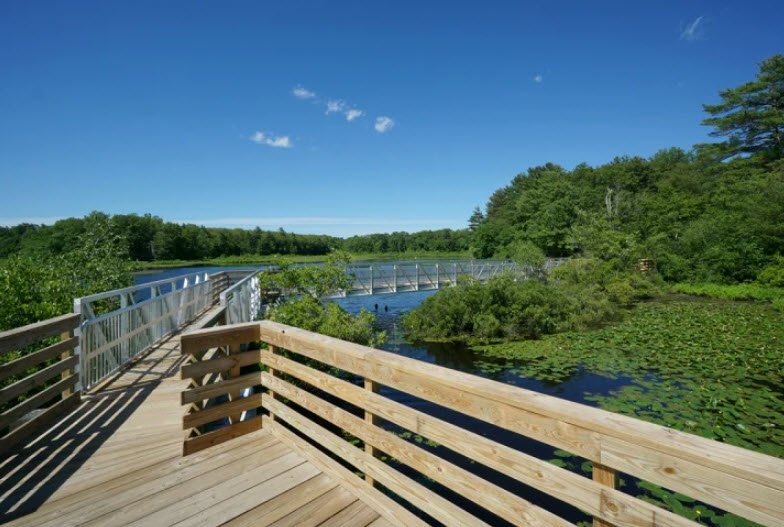 Managed by the Massachusetts Department of Conservation and Recreation, it features Turtle Pond for fishing sunfish and perch, up to 12 miles of trails for hiking, walking, and biking through forests rising to 338-foot Bellevue Hill—the city's highest point—and athletic fields, a pool, spray deck, and wetlands protecting rare species habitats.