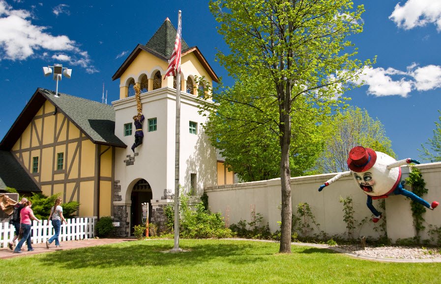 The park is designed to bring children's literature and fairy tales to life with large sculptures and themed play areas featuring characters from classic stories like The Cat in the Hat, Winnie-the-Pooh, and Snow White. Admission to the park is free to the public during the operating season from Memorial Day through Labor Day, and the park relies on donations and community support for its upkeep.