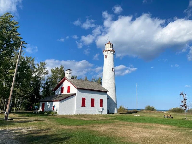 The park centers on the historic Sturgeon Point Lighthouse, a 70‑foot Cape‑Cod‑style tower built in 1869 to warn mariners away from a long underwater reef, with the keeper’s house now serving as a maritime museum open seasonally.