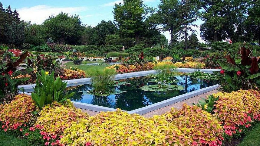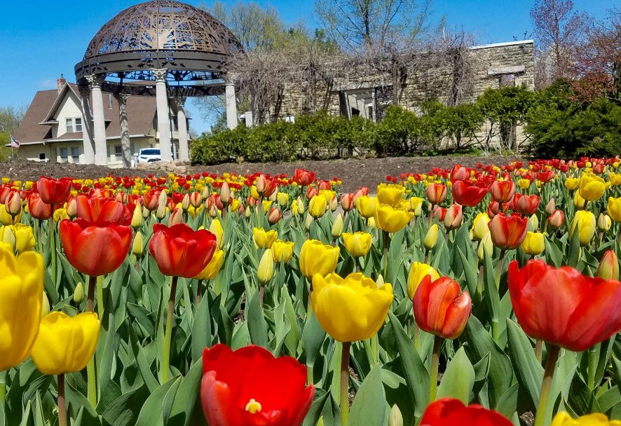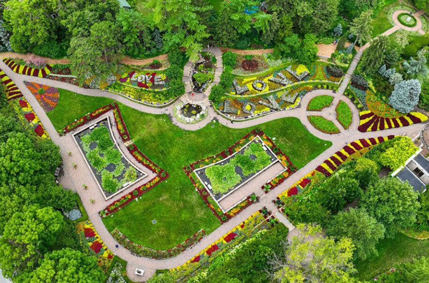It was built during the Great Depression as a project for unemployed men and originally known as the "Rock Garden" due to its terraced stone walls, waterfalls, and fountains incorporated into the landscape. The garden features over 30,000 annual flowers, vibrant tulip displays in the spring, lily ponds, cascading water features, peaceful art installations, and diverse trees and shrubs that bloom throughout the seasons.