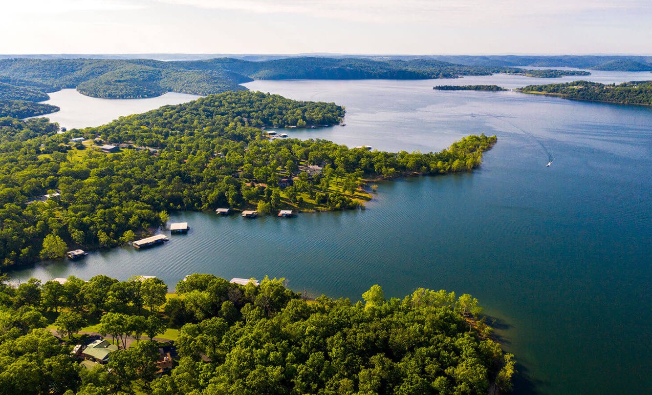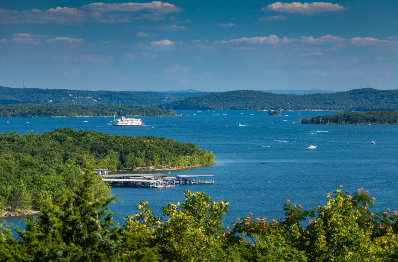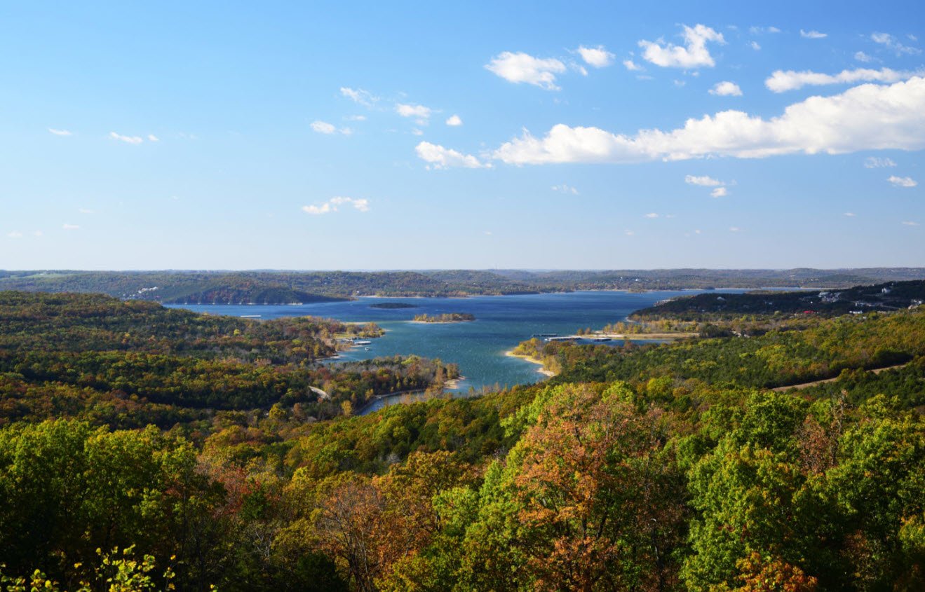 Created by the construction of Table Rock Dam on the White River in the 1950s, the lake covers over 43,000 acres and has more than 800 miles of shoreline, offering a vast and scenic aquatic environment. Known for its crystal-clear waters and tree-lined shores, the lake is a popular destination for boating, fishing, swimming, water sports, camping, and hiking, with numerous marinas, parks, and recreational facilities around its perimeter.
