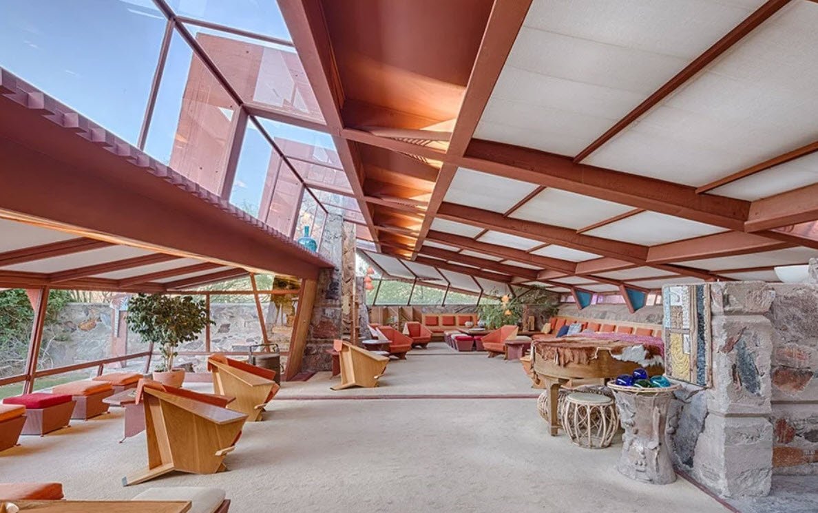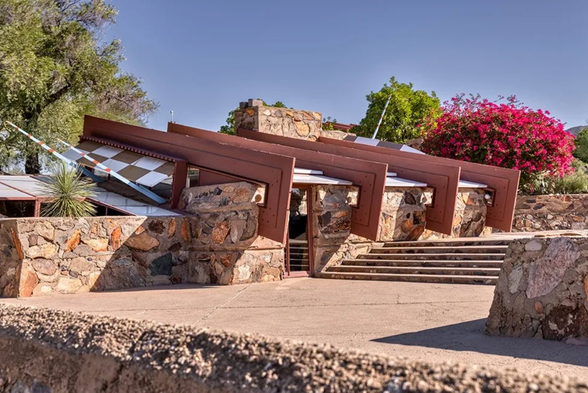 Designed to harmonize with the surrounding Sonoran Desert, the complex was built primarily with local stone and materials using a technique Wright called “desert masonry.” The buildings feature low-slung roofs, canvas coverings to diffuse light, and interiors with handcrafted furnishings designed by Wright and his apprentices.