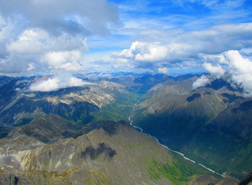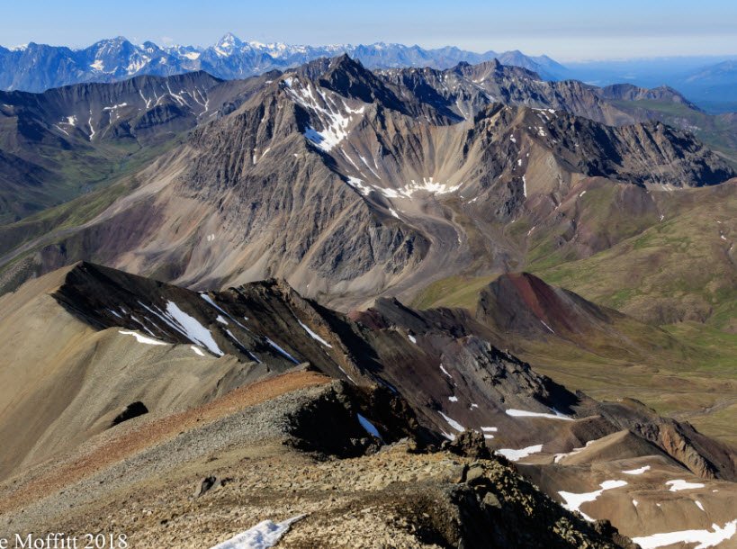 The Talkeetna Mountains in Alaska form a rugged mountain range extending about 100 miles north to south and 70 miles east to west.