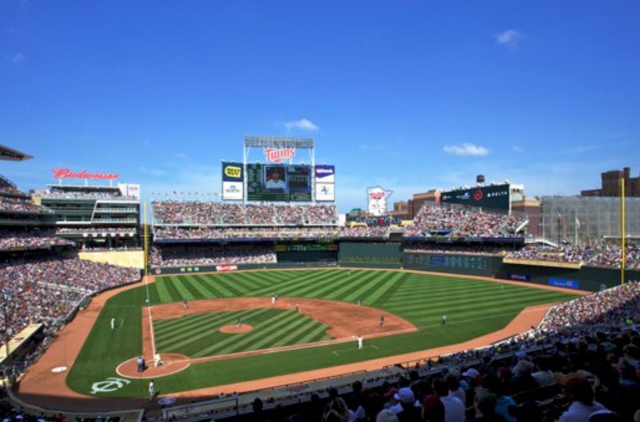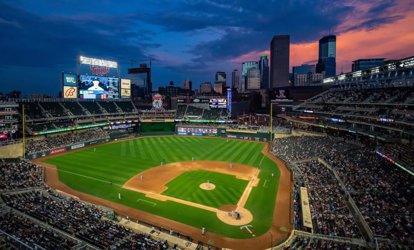 Named after the Minneapolis-based Target Corporation, it replaced the Hubert H. Humphrey Metrodome to bring outdoor baseball back to the city. The stadium is designed to provide excellent sightlines and fan experiences, featuring a façade made from native Kasota limestone and a canopy that covers much of the upper seating areas. It includes iconic features such as the 1,500-pound bronze glove sculpture at the entrance, statues of Twins legends, and a rooftop neon sign depicting the classic Twins logo with “Minnie & Paul” shaking hands, which lights up when a home run is hit.