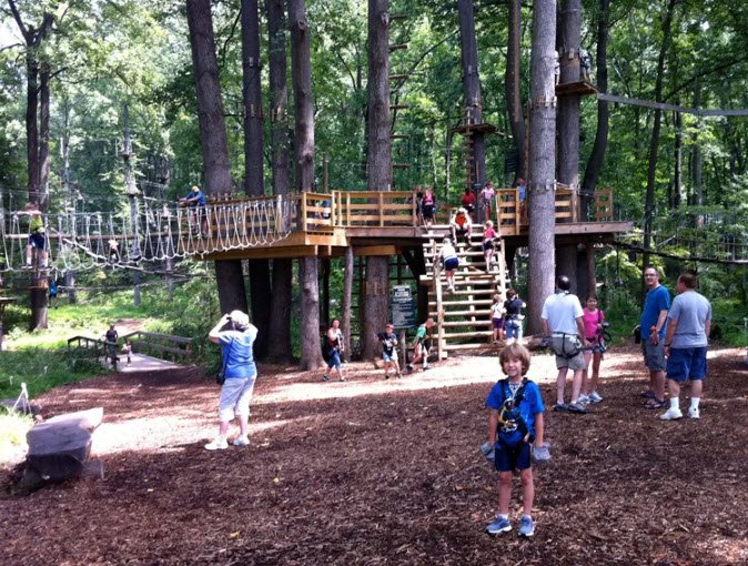 Established in 2011 on the campus of Sandy Spring Friends School, it features 14 courses with over 200 climbing and ziplining elements, ranging from easy trails for young children aged 5 and up to challenging courses that reach heights up to 65 feet.
