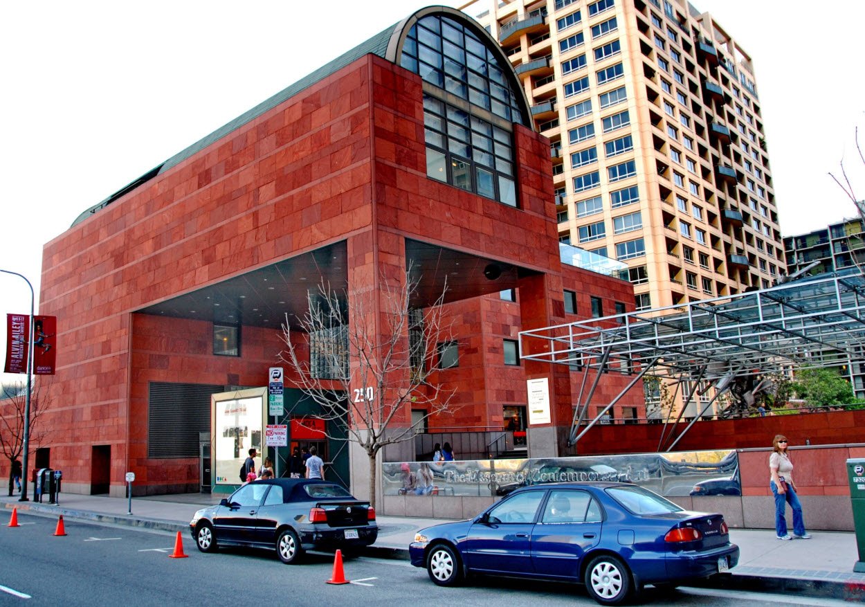 Its main location is on Grand Avenue in Downtown Los Angeles near the Walt Disney Concert Hall, featuring a building designed by architect Arata Isozaki. MOCA also has the Geffen Contemporary at MOCA in the Arts District, housed in a reimagined warehouse by Frank Gehry, which displays large-scale and experimental works, and a smaller venue at the Pacific Design Center in West Hollywood focusing on innovative intersections of art, design, and architecture.