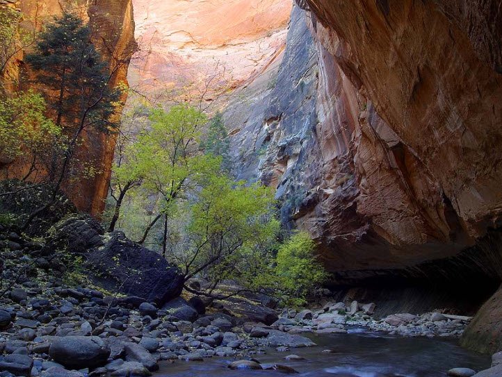 It is renowned for its towering Navajo sandstone walls, which rise up to 1,000 to 2,000 feet high, creating a dramatic and scenic slot canyon. The popular hike through The Narrows involves walking, wading, and sometimes swimming upstream in the Virgin River itself, as the riverbed serves as the trail.