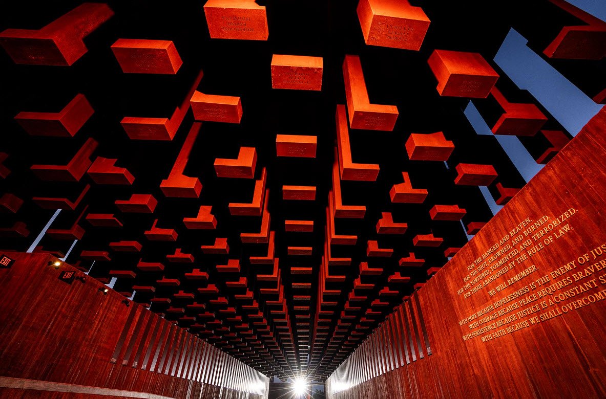Opened in 2018 by the Equal Justice Initiative (EJI), it occupies six acres and features over 800 suspended steel monuments, each representing a county where documented lynchings occurred, with the names of victims engraved on them. The memorial serves as a sacred space for truth-telling, reflection, and healing about the legacy of racial violence from 1877 to 1950 and its ongoing impact today.