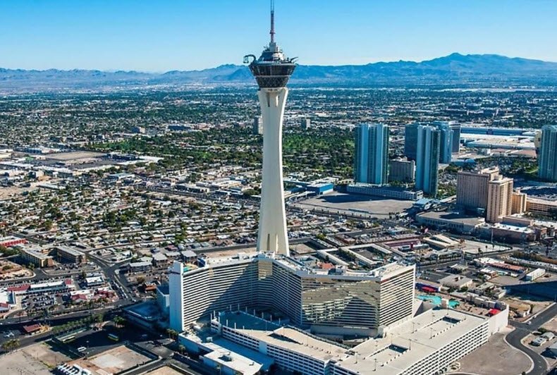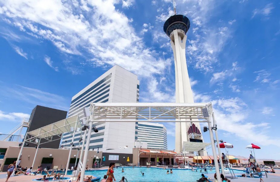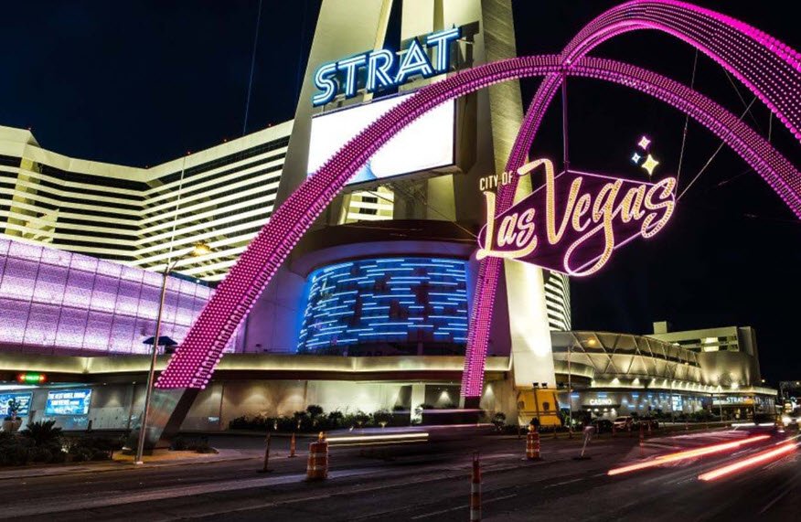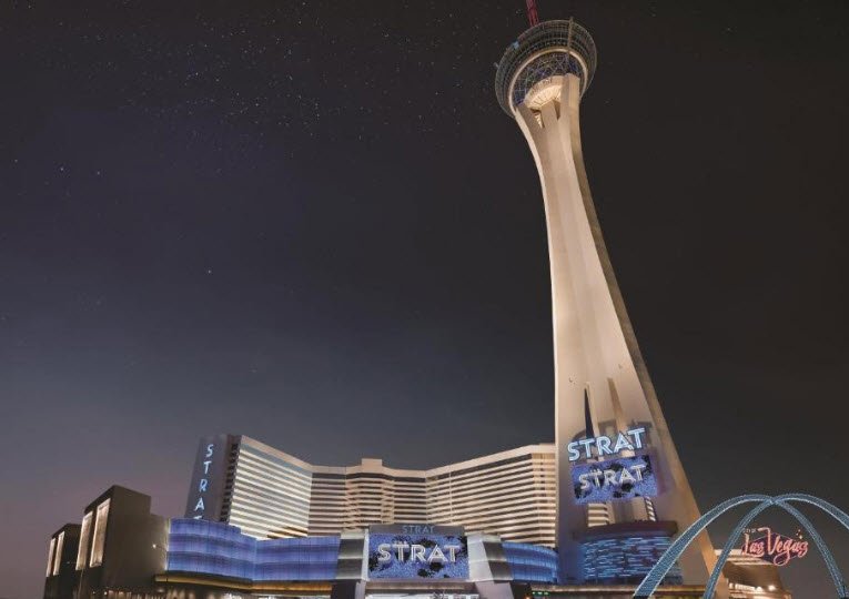 It includes 2,427 newly renovated rooms, an 80,000-square-foot casino with nearly 800 slots, 38 table games, a sportsbook, and entertainment options such as concerts and Cirque du Soleil-style shows, plus nine dining venues from Top of the World revolving restaurant to casual spots like Strat Café.