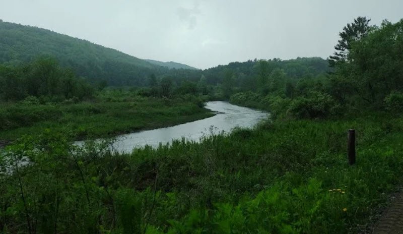 It features the renowned 5-km Woods Hill Trail, a world-class path for cross-country running and skiing, plus networks of paths through woodlands with historic Civilian Conservation Corps structures like a ranger station and stone fireplaces listed on the National Register of Historic Places.