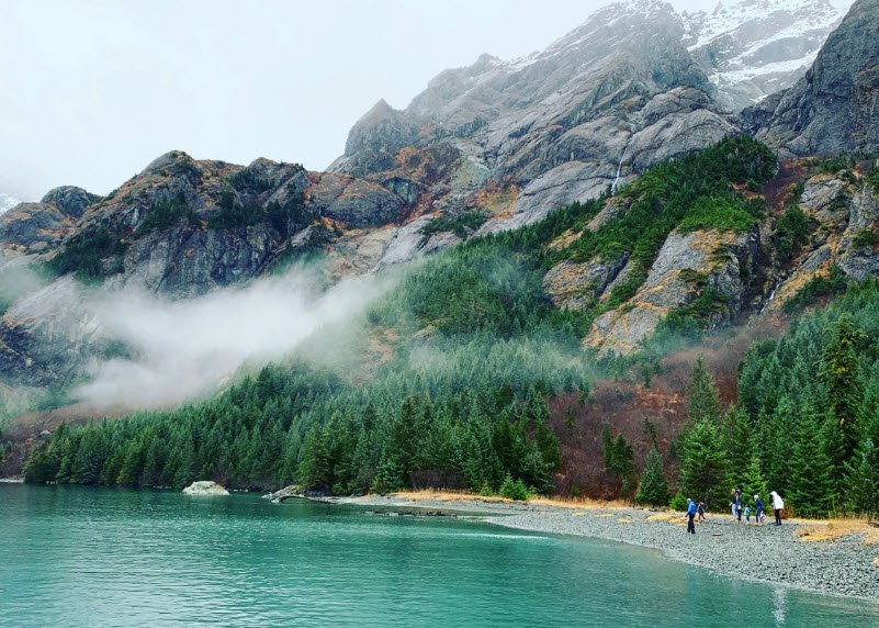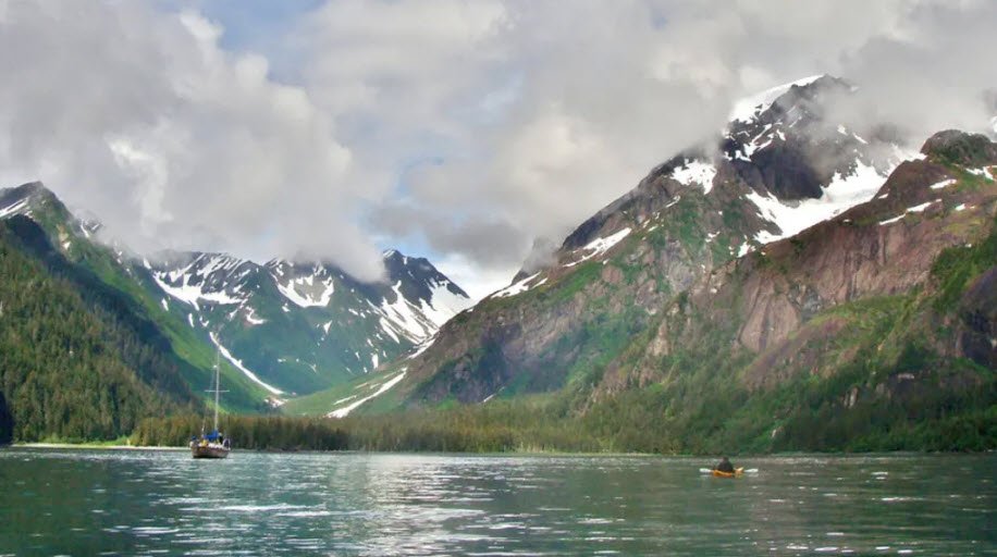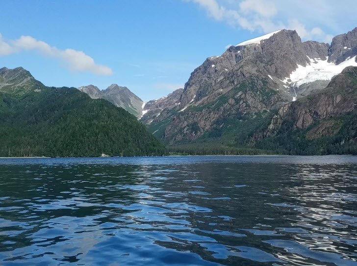 It features a peaceful anchorage sheltered from bay winds, a long sandy-gravel beach, forested uplands of spruce, hemlock, and alder, dramatic rock faces, cascading waterfalls, and the towering Porcupine Glacier as its centerpiece. Visitors enjoy two public-use cabins (including wheelchair-accessible Spruce Glacier Cabin), backcountry beach camping, sea kayaking, salmon fishing, hiking, wildlife viewing, and campfires amid pristine scenery, though winter access is challenging due to rough seas and weather.