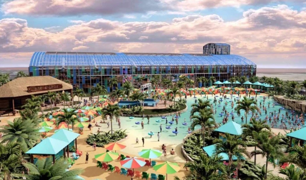 Tropic Falls combines indoor water fun with outdoor amusement park excitement in a vibrant, colorful setting.