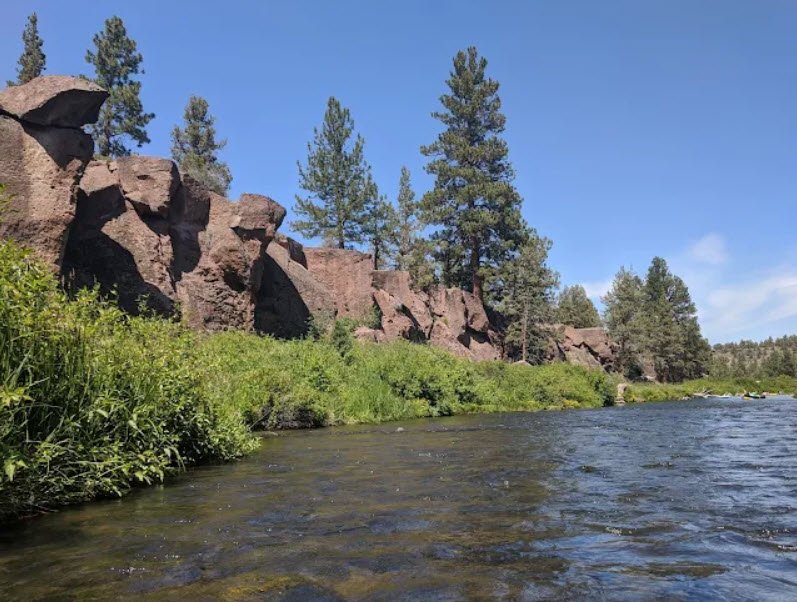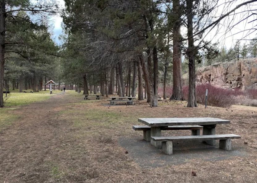 It offers shaded picnic areas, a popular wading and swimming spot on the river, excellent trout fishing especially in spring and late summer, a playground, and access to a 2.4-mile segment of the Deschutes River Trail for hiking and birdwatching with no bikes or dogs allowed in parts.