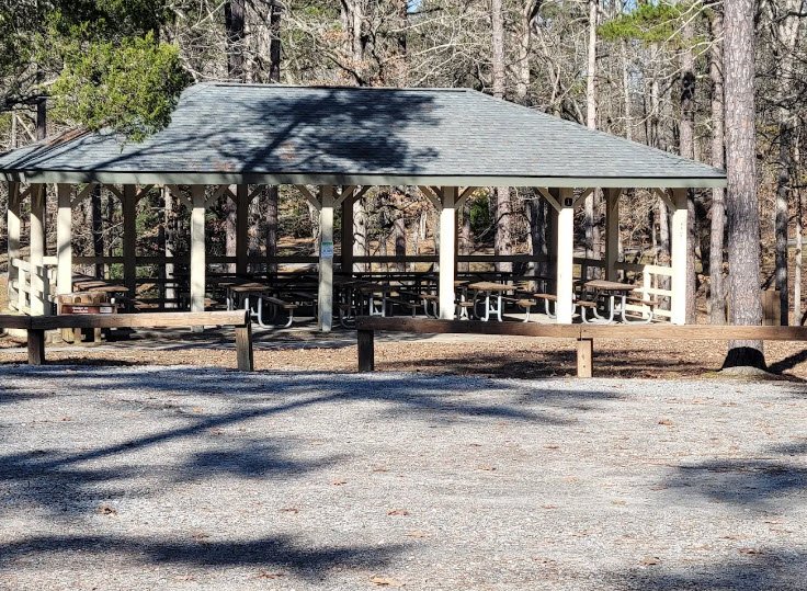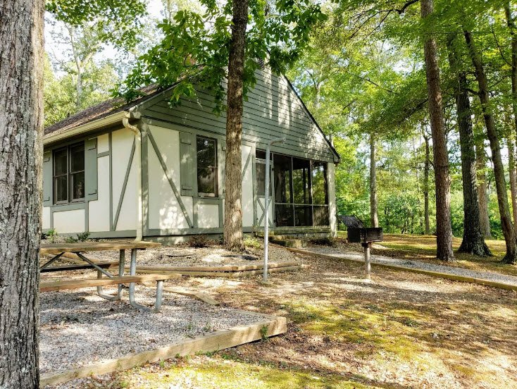 Originally two racially segregated parks during the Great Depression era that merged in 1976, it offers camping at 33 sites, 11 climate-controlled cabins, boating and fishing for bass, crappie, sunfish, and catfish, seasonal swimming beaches, over five miles of hiking and biking trails, picnic shelters, and the Cedar Crest Conference Center for events.