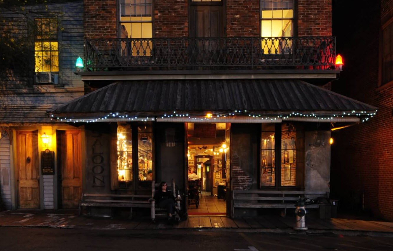 It is located in the historic "Under-the-Hill" district along the Mississippi River, once known as a rough, lively port area frequented by river men, gamblers, thieves, and prostitutes. The saloon's building has served various purposes over the years, including as a brothel, warehouse, general store, and bar. Today, it retains a historic, old-school dive bar atmosphere with dark wood, vintage photographs, and local memorabilia.