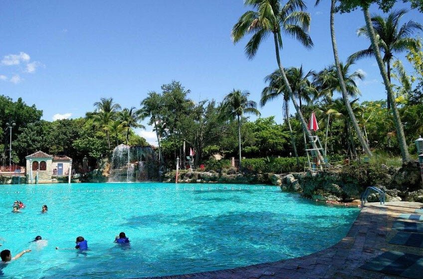 It was designed by architect Phineas Paist with artist Denman Fink and named after Venice, Italy, featuring Mediterranean-style elements such as waterfalls, caves, a scenic bridge, and coral rock formations. The pool holds about 820,000 gallons of fresh spring water, which is drained and refilled daily. It was originally part of George Merrick’s vision for Coral Gables as a beautiful city with Mediterranean charm.
