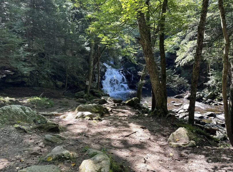 The short graded path from parking leads to the photogenic cascade—best in spring runoff—plus a half-mile loop trail along upper falls for hiking, picnicking, fishing, and relaxation. Open sunrise to sunset year-round with no fee, it offers serene Berkshire views and wildlife amid Becket Gneiss outcrops.