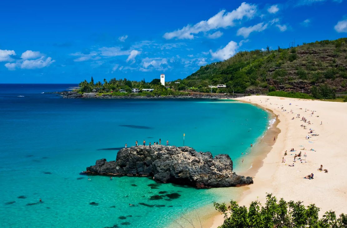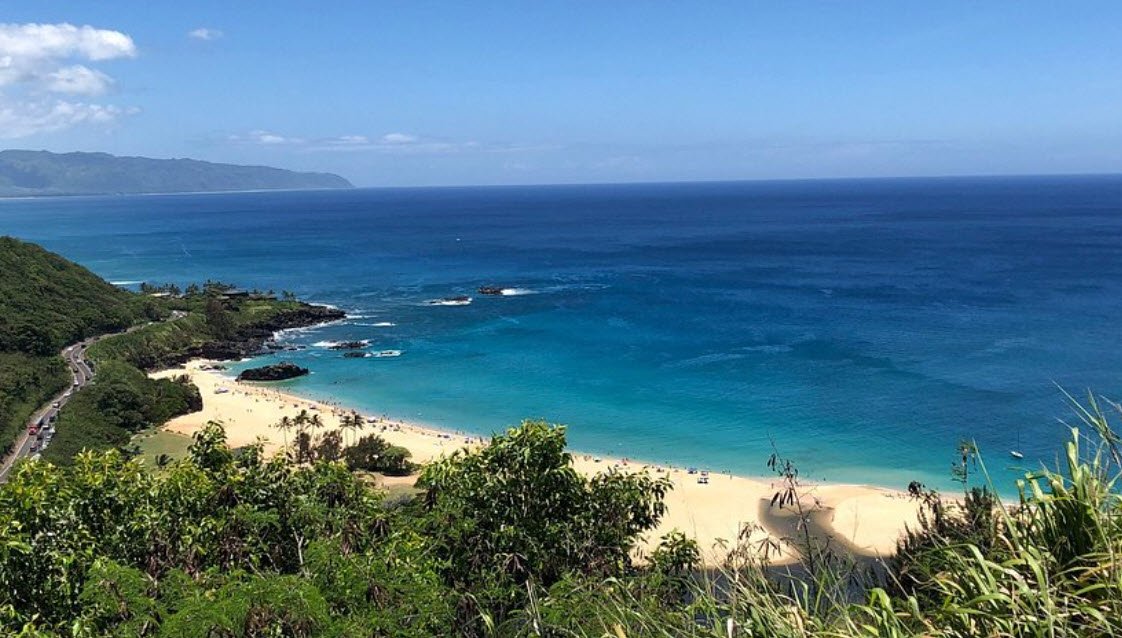The bay features a wide, clean white sand beach backed by lush tropical greenery and is adjacent to Waimea Valley, known for its botanical gardens and waterfall hikes. Amenities include parking, picnic areas, restrooms, showers, and lifeguard services, though parking can be challenging during busy times. Waimea Bay is not only a prime surfing spot but also a beautiful beach destination appreciated for its natural beauty and recreational opportunities year-round.
