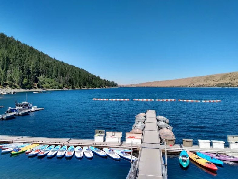 It offers spacious picnic areas, a sandy beach for swimming, boating and fishing for trout and kokanee salmon on the clear alpine lake, plus access to the Wallowa Lake Tramway ascending Mt. Howard for panoramic views of the Eagle Cap Wilderness.