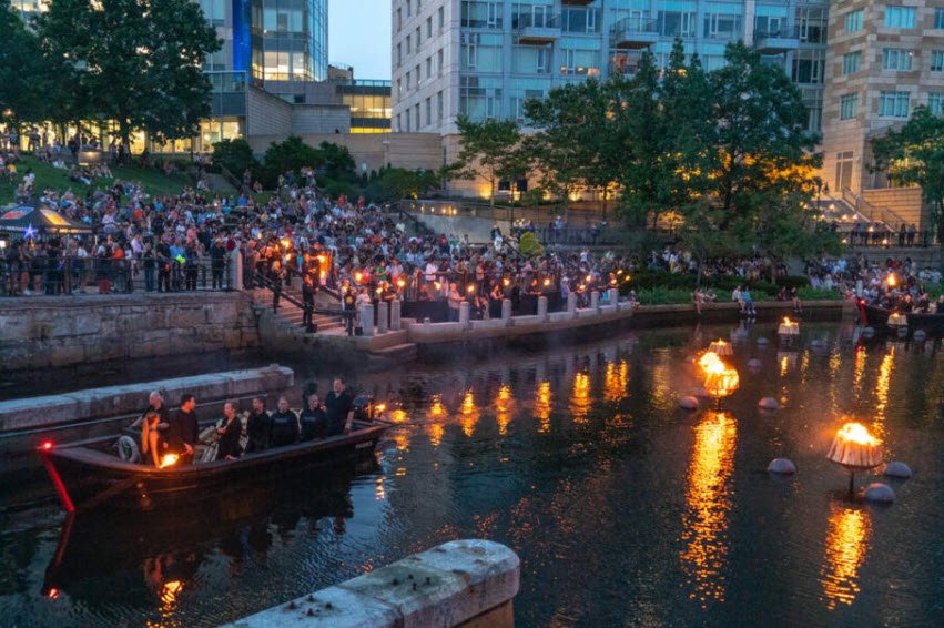 Created by Barnaby Evans in 1994, WaterFire features a series of more than 80 bonfires lit on floating braziers that illuminate the three rivers flowing through Providence. This sensory-rich experience combines the flickering firelight, aromatic wood smoke, torchlit fire tenders, music from around the world, and torchlit boats, captivating millions of visitors since its inception.