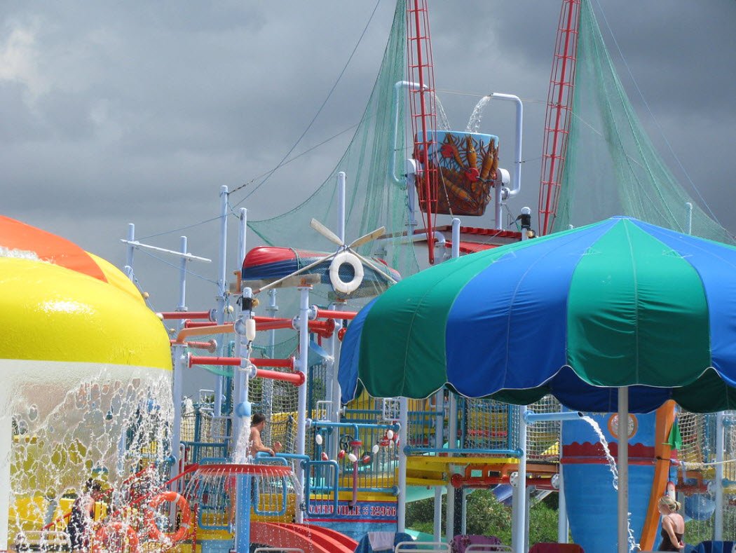 The amusement park offers go-karts, a large arcade, miniature golf, trampolines, escape rooms, and kiddie rides, making it a family-friendly destination. Located just a quarter-mile from the Gulf of Mexico, it combines water fun and dry-land entertainment with amenities like a lagoon bar and seasonal events.