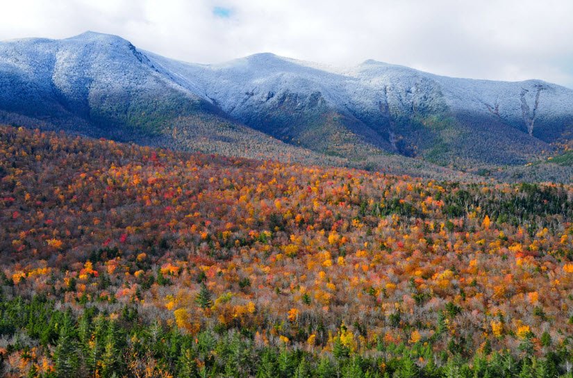 The White Mountains in New Hampshire, USA, are a rugged mountain range covering approximately a quarter of the state and extending slightly into western Maine.