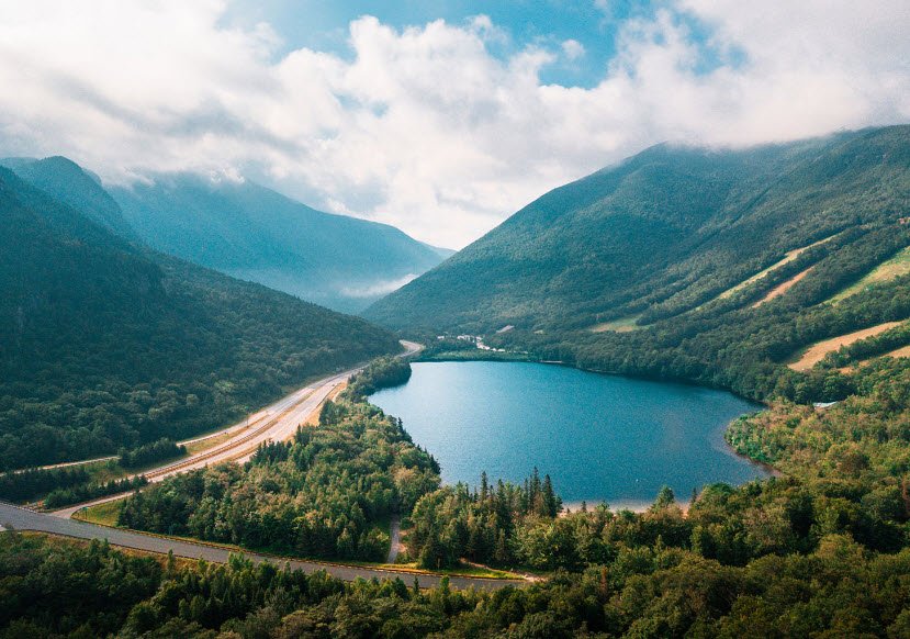 The area is heavily forested with dense evergreen trees and has many rounded mountain passes called notches, carved by ancient glaciers.The White Mountains offer diverse outdoor recreational opportunities including hiking along the Appalachian Trail, skiing, climbing, and exploring the White Mountain National Forest, which covers around 800,000 acres.