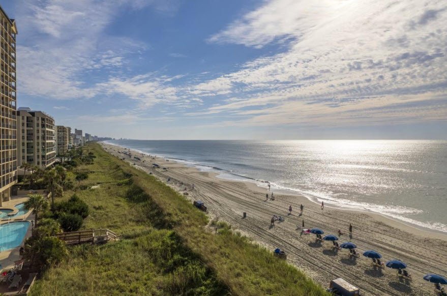 Windy Hill Beach in North Myrtle Beach, South Carolina, is a serene and family-friendly beach known for its wide sandy shores, calm waters, and peaceful atmosphere.