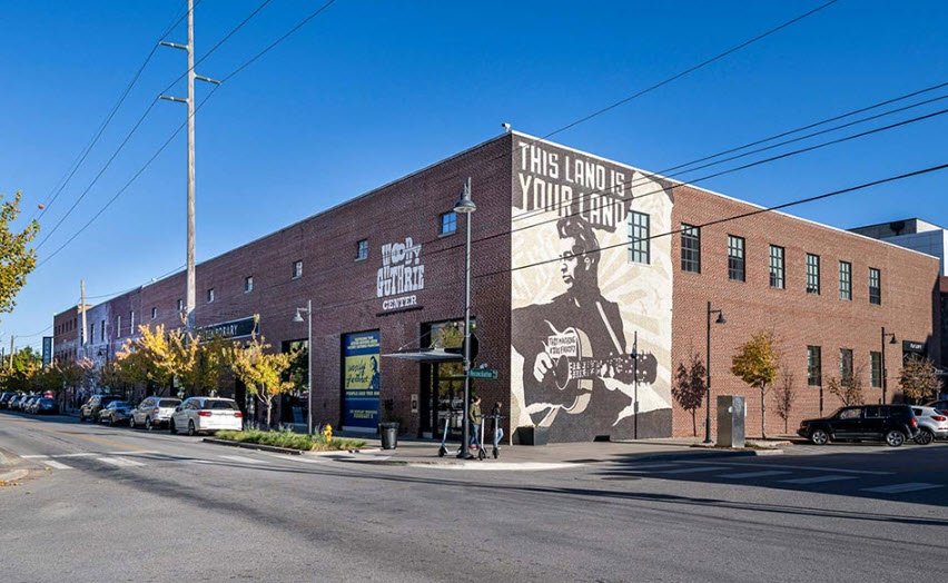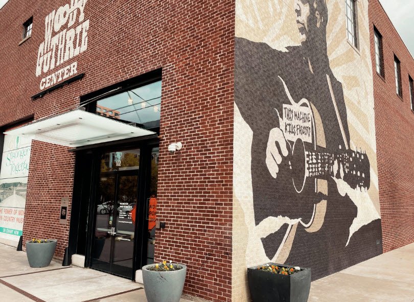 Opened in 2013, the center is housed in a historic building that was formerly the Tulsa Paper Company and features interactive exhibits including Guthrie’s original musical instruments, handwritten lyrics and notebooks, artwork, photographs, and memorabilia.