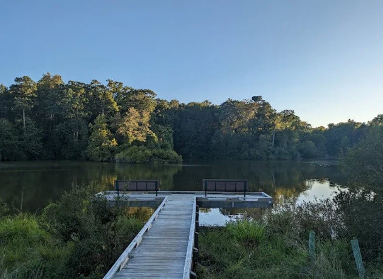It offers over 40 miles of trails for hiking, mountain biking, and horseback riding through marshes, creeks, and woodlands, plus a boat ramp, fishing pier, kayak rentals, playgrounds, and ranger-led programs on ecology and history. Popular for birdwatching with 70+ species, fossil hunting, paddling, and picnicking, the park operates from 8 a.m. to dusk year-round with no on-site camping but ample day-use facilities.