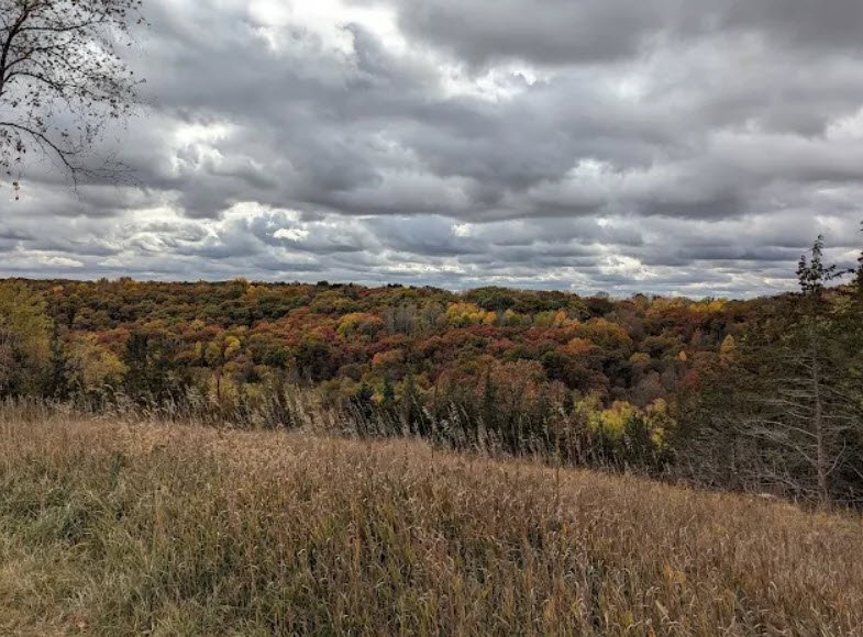 Afton State Park in eastern Minnesota near Hastings spans 1,695 acres along the St. Croix River, featuring rolling glacial moraines, deep wooded ravines, restored prairies, oak savannas, and blufftop views just 20 miles from the Twin Cities.