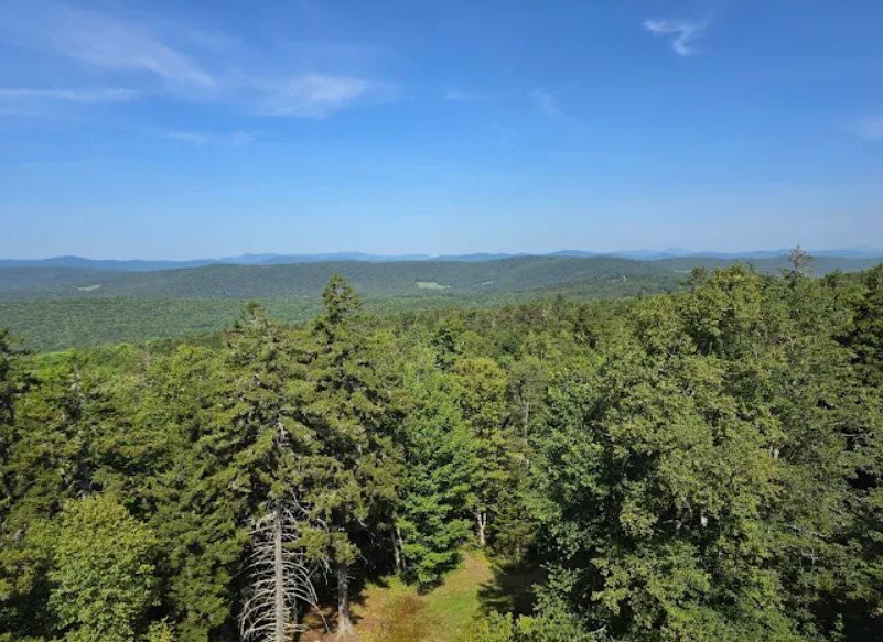 It features a historic fire lookout tower offering 360-degree panoramic views of central Vermont's peaks, a Bear Hill Nature Trail loop, picnic areas with a pavilion and horseshoe pits, and a small campground with 18 wooded sites plus 8 lean-tos developed by the Civilian Conservation Corps in the 1930s, all listed on the National Register of Historic Places.