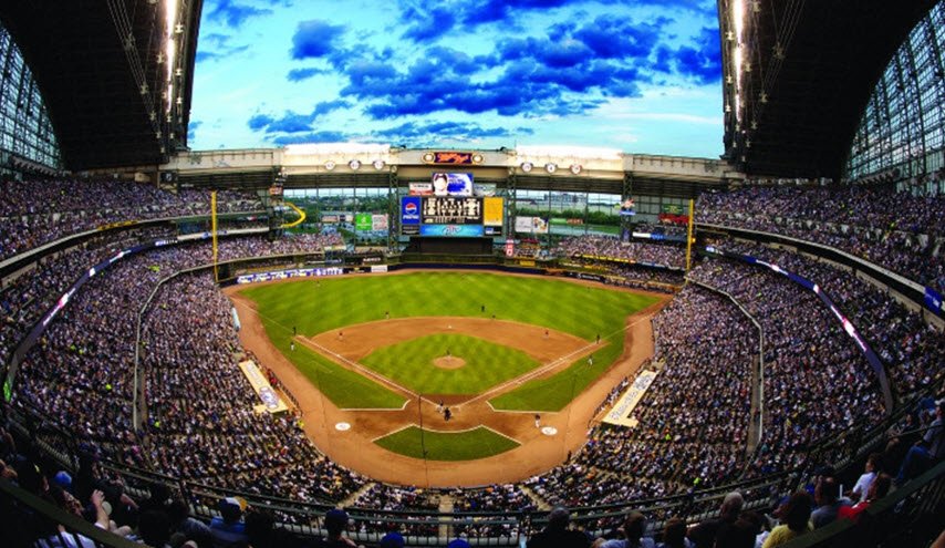 It is notable for its unique fan-shaped retractable roof, one of a kind in North America, which can open or close in under 10 minutes, allowing natural grass to grow under large glass panels while protecting the field from unpredictable weather. The stadium seats close to 42,000 fans and features multiple levels of seating with amenities such as children’s play areas, open-air patios, brew pubs, and a Brewers Hall of Fame.