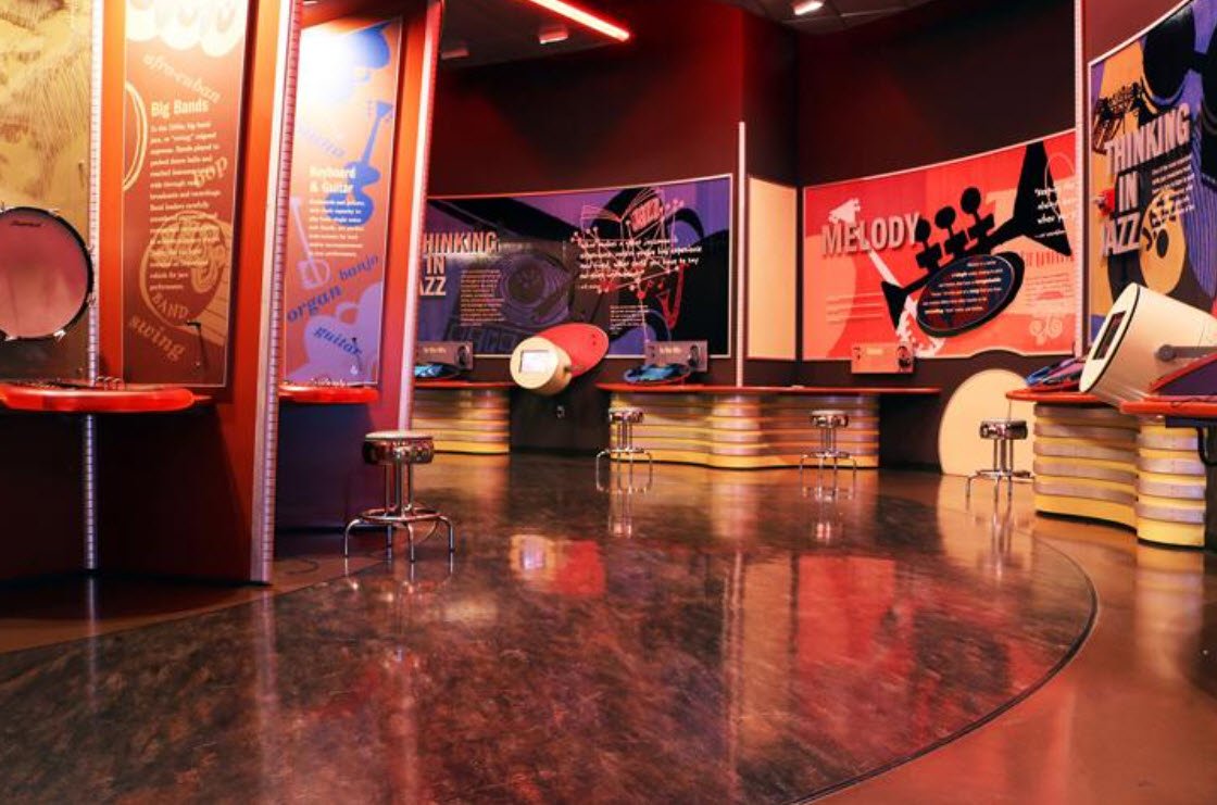 It features interactive exhibits, photographs, memorabilia, and artifacts that highlight the contributions of legendary jazz artists like Charlie Parker, Ella Fitzgerald, Duke Ellington, and Louis Armstrong. The museum serves as a vibrant cultural hub with live performances held regularly in its Blue Room jazz club and the Gem Theater, offering both historical education and contemporary jazz experiences.