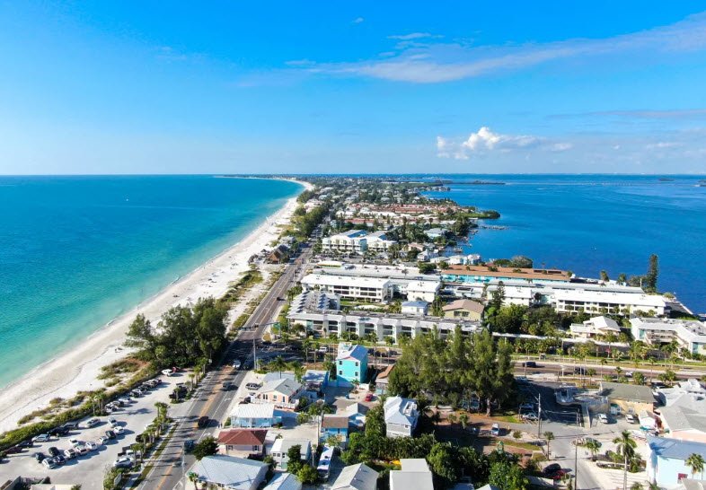 It is known for its pristine sugar-white beaches, clear turquoise waters, and a laid-back, old Florida atmosphere with limited development that preserves its natural beauty and charm. The island includes three main communities: the City of Anna Maria, Holmes Beach, and Bradenton Beach, each offering relaxed beachside living, unique local shops, and dining.