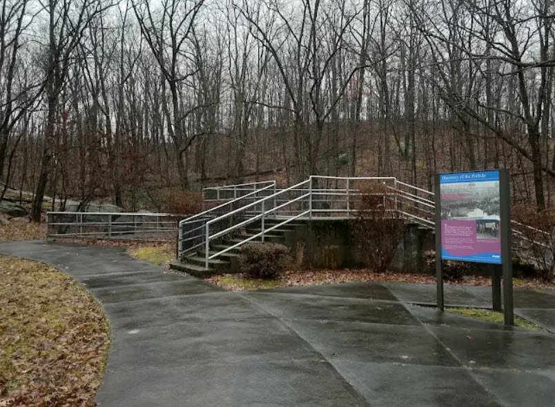Its centerpiece is the largest known glacial pothole in the United States, a 38-foot-deep, 42-foot-wide elliptical hole carved over 15,000 years ago during the Wisconsin Glacial Period by swirling meltwater and rock debris. Uncovered by coal miners in 1884 and opened as a state park in 1964, it offers a fenced viewing platform, interpretive signs, short woodland hiking trails, and adjacent athletic fields in a peaceful setting blending geology, history, and nature.