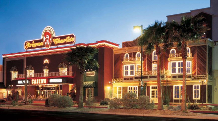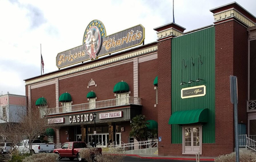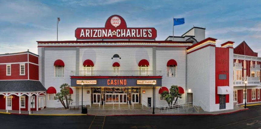 Opened in April 1988 on the site of a former 1963 bowling alley and named after relative Arizona Charlie Meadows, it spans 55,227 square feet with over 1,000 slot machines including progressives like Megabucks, low-denomination options, seven table games such as $5 blackjack, craps, roulette, and Pai Gow Poker, plus a 24-hour bingo hall, small poker room, keno lounge, and race/sportsbook.